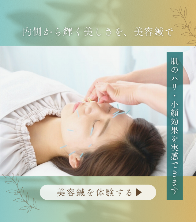 当院の美容鍼は、身体の内側(内臓や血行)と外側(お顔の悩み)の両方へ同時にアプローチし、「健康的な美しさ」を引き出すお手伝いをいたします。